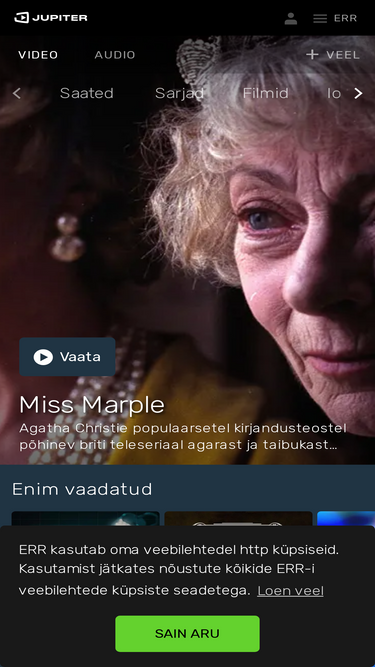100%ERR-i tasuta veebikanal, mis näitab parimaid saateid, sarju, filme, dokfilme ning võimaldab mugavalt otse kuulata kõiki ERRi raadio ja teleprogramme.
