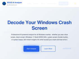 81%Free AI-powered Blue/Black Screen of Death analyzer. Upload your Windows crash dump files and get instant diagnosis with actionable solutions for both classic and modern crash screens.