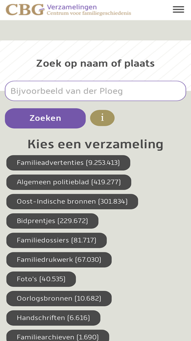 100%Start het onderzoek naar je familiegeschiedenis! Het CBG|Centrum voor familiegeschiedenis is opgericht om het stamboomonderzoek en daarmee verbonden wetenschappen te bevorderen.