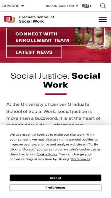 65%As an undergraduate sociology major, new University of Denver Graduate School of Social Work (GSSW) graduate Araceli Esparza, MSW ’24, was fascinated by social problems and the social dynamics of issues such as human trafficking. That interest led her to become a community service officer with a police department, where she worked in a diversion program for first-time juvenile offenders.In that role, she started to recognize some of the service gaps in her Tulare County, CA, community. She recalls, “There were kids I would lose. Some fell through the cracks. I was at a loss because I didn’t understand how I could help.” Esparza wanted to do more, so she began researching graduate degree options that would fit her goals to help some of her community’s most marginalized members.With its flexibility to work at the micro, mezzo and macro levels in a wide variety of settings, social work seemed like an ideal fit. With a recommendation from her community’s chief of police, Esparza enrolled in GSSW’s MSW@Denver online MSW program, where she specialized in Mental Health & Trauma. She selected that pathway because it “would give me the ability to be a micro-level social worker and have that [human] connection, so one day when I navigate my way back to macro, I’ll remember that there are people behind the statistics.”For the past year, Esparza has put her education to work as a victim advocate in her county district attorney’s office, where she completed a “place of employment” field internship. In her victim advocate role, she does case management, accompanies families to court, and helps victims to understand the various laws and policies involved in their cases.Esparza says the MSW program’s emphasis on understanding power, privilege and oppression and her increased level of self-awareness have helped her to be successful in her current role. She also appreciates the deep connections she made to faculty members and other students. Despite her classmates being scattered acr
