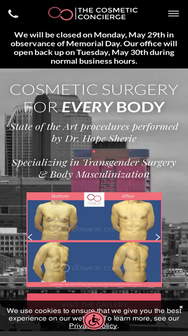 89%Our Mission The Cosmetic Concierge is a purpose-driven practice dedicated to empowering individuals through affirming surgical care and personalized, body-positive transformation. About Our Practice Transforming Bodies, Honoring Stories. At The Cosmetic Concierge, our mission is to help every patient feel seen, affirmed, and empowered in their body. We offer personalized surgical care rooted in compassion,