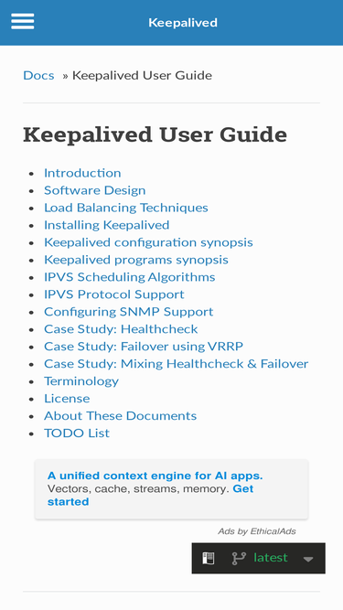 According to Similarweb data of monthly visits, keepalived.org’s top competitor in February 2026 is keepalived.readthedocs.io. keepalived.org 2nd most similar site is readthedocs.org, and closing off the top 3 is docs.mirantis.com.