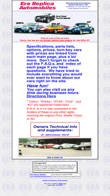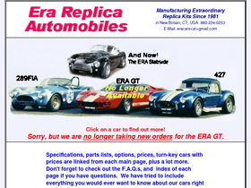 72%era replica automobiles is the premiere maker of roadster replicas, both the 427sc and the 289fia. e.r.a. also makes the worlds best gt40 replica.