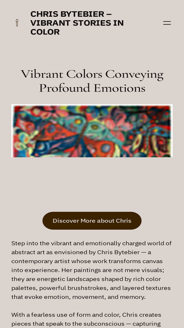 100%Abstract expressionist paintings in bright, vivid brush strokes by Chris Bytebier, a young Belgium artist living in the South of Spain. See her unique, captivating style in her on-line gallery.