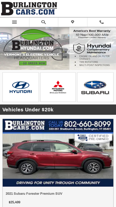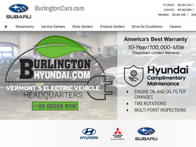 100%the burlingtoncars.com auto group; burlington hyundai & burlington subaru (in burlington, vt) and burlington mitsubishi (in south burlington, vt) sells and services new hyundai, new subaru, and new mitsubishi vehicles. each location also carries a great selection of used cars and vehicles for sale in the greater burlington vermont area.