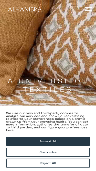 alhambra offers fabrics for home, residential and contract projects and its fabrics can be used for upholstery, curtains, cushions, sheers and decoration.