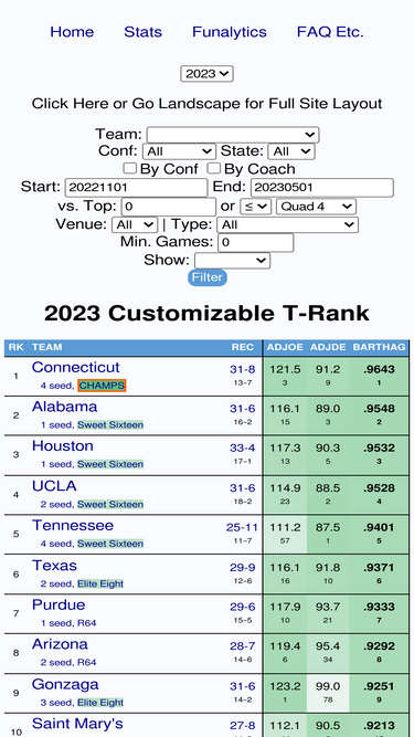 100%Advanced college basketball analytics used widely by coaches, journalists, and fans.