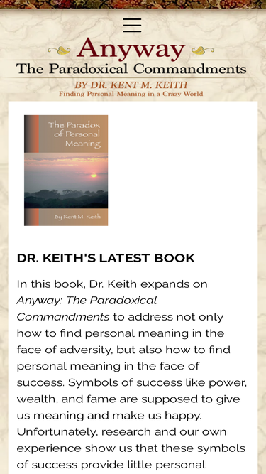 The Paradoxical Commandments by Kent M. Keith have touched the hearts of millions around the world. They have been put on walls, refrigerator doors, featured in speeches and articles, preached from pulpits, shared extensively on the web, and used by business, military, and government leaders.