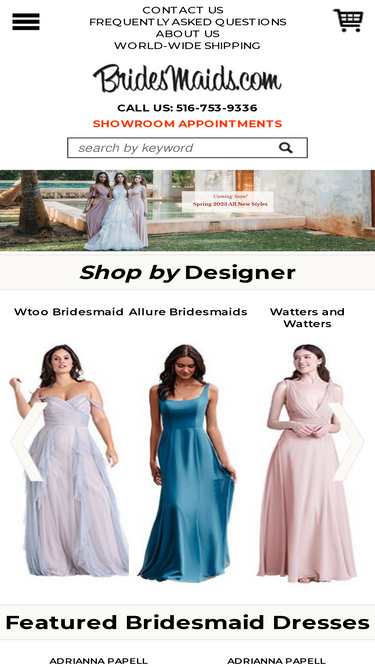 We are a bridesmaids and moms dress store! We carry many designers, and the ability to order any dress for you! We have online and in-person shopping. Here comes the Bridesmaid!