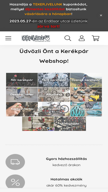 87%Fedezd fel kerékpár webshopunk széles választékát, ahol egészségpénztári kártyával vásárolhatsz! Kínálatunkban mountain bike-ok, városi trekking kerékpárok és k