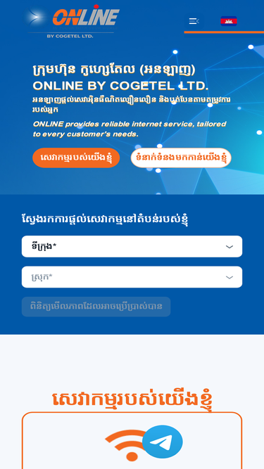 94%COGETEL., Ltd. (ONLINE) is Cambodia's premier ISP and broadband provider, offering high-speed internet, corporate solutions, and innovative telecommunications services. Featured services: INTERNET HOME Package ETTORS, Ultra - Silver Pro 150, Silver Plus 100
