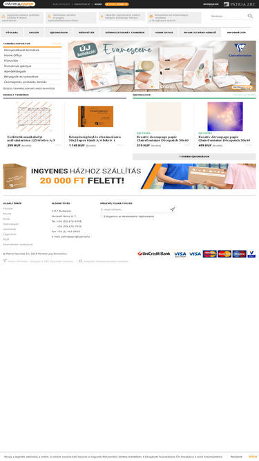47%Papír-írószer, nyomtatvány, iroda- és iskolaszerek, fénymásolópapírok, naptárak, kreatív, hobbi és dekorációs termékek. 20 000 Ft felett ingyenes szállítás