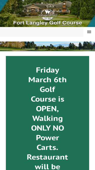 91%Located in the Fraser Valley, near Vancouver BC, Fort Langley Golf Course, situated on the banks of the Fraser and Salmon River, is a hidden gem in a country setting. Championship golf can be played from our blue tees measuring 6,383 yards. With tight tree lined fairways, numerous sand bunkers, ponds and smooth undulating greens, every club in your bag will be tested. Perfect venue for weddings, events and banquets. Check out Fort Langley Golf Course Layout & Gallery.