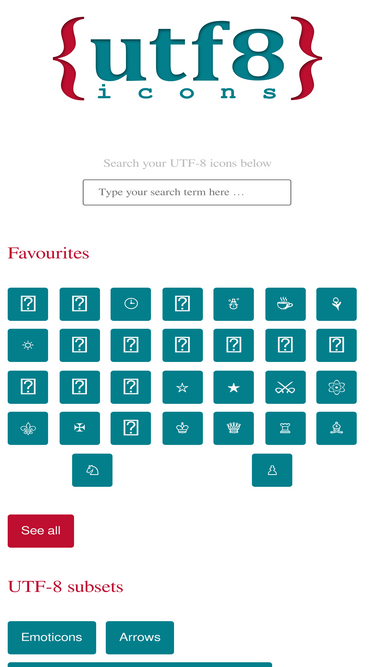 utf-8 icons aims to offer it's visitors an easy to use method for identifing those hard to find utf-8 characters that can be used as icons in place of images.