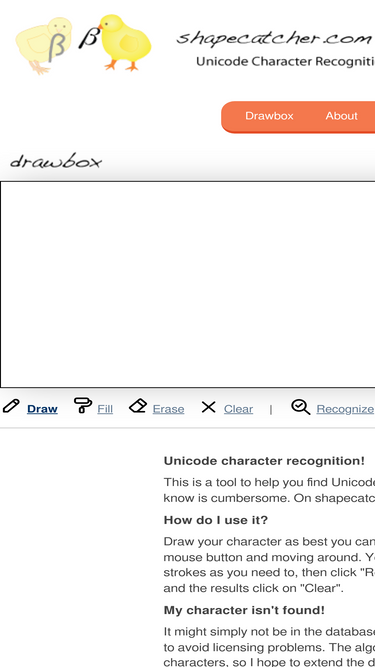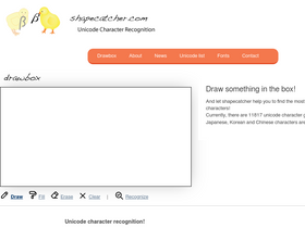 100%you need to find a specific unicode character? with shapecatcher.com you can search through a database of characters by simply drawing your character into a box. it can find the most similar character shapes for your drawing.