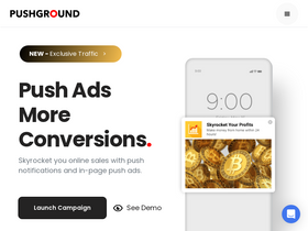 71%Pushground allows media buyers and affiliates to maximize their performance-marketing providing a global supply of high-quality ad traffic with a min CPC of $0.001.