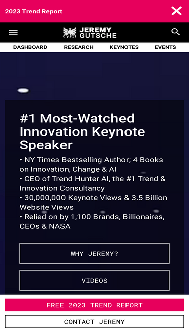 72%Top Innovation Keynote Speaker Jeremy Gutsche, New York Times Bestselling Author, futurist and CEO of Trend Hunter with keynote speeches on innovation and creativity, trends, change strategy and leadership