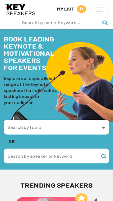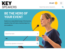 71%key speakers is able to provide you with an unparalleled range of keynote speakers and artists who truly make a difference and have a lasting impact on their audiences. our in-depth industry expertise, resource library, connections and research capabilities allow us immediate access to thousands of the most current and popular speakers, business visionaries, media personalities, celebrities, sports figures and authors.