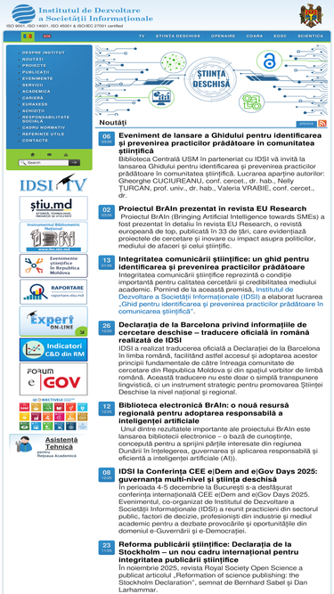 67%idsi.md îşi propune să reprezinte, în sistemul cdi al ţării, un institut de referinţă, care să promoveze utilizarea tehnologiilor informaţionale în domenii-cheie pentru dezvoltarea societăţii informaţionale