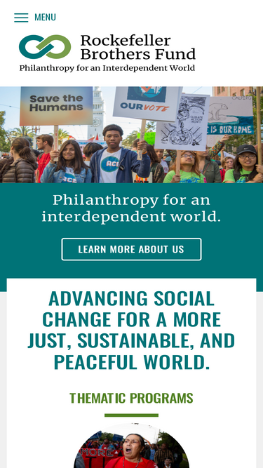86%the rockefeller brothers fund advances social change that contributes to a more just, sustainable, and peaceful world.