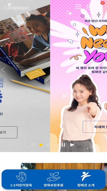 92%한국의 전쟁고아를 돕기 위해 시작된 컴패션은 현재 전세계 29개국의 가난한 어린이들을 후원하여 자립이 가능한 성인이 될 때까지 전인적으로 양육하는 국제어린이양육기구입니다.