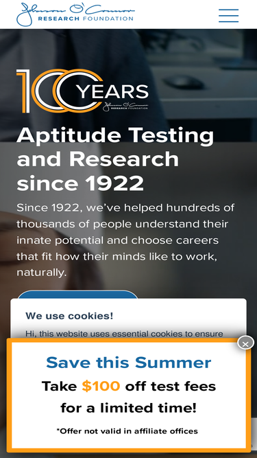 85%JOCRF is a nonprofit scientific research & educational organization with 2 primary commitments: to study human abilities and to provide people with a knowledge of their aptitudes that will help them derive more satisfaction from their lives by discovering their natural potential.