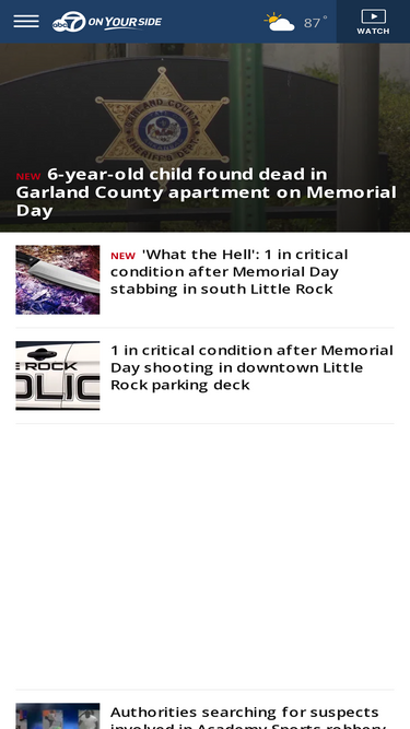 100%KATV ABC 7 in Little Rock, Arkansas covers news, sports, weather and the local community in the city and the surrounding area, including Hot Springs, Conway, Pine Bluff, Jacksonville, Sherwood, Stuttgart, Benton, Bauxite, East End, Scott, Pinnacle, Maumelle, Gibson, Landmark and Hensley.