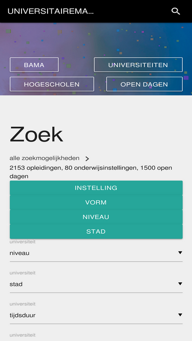 99%alle universitaire opleidingen op bachelorniveau gecombineerd met objectieve studiekeuzeinformatie, voorlichtingsdagen, open dagen en meeloopdagen.