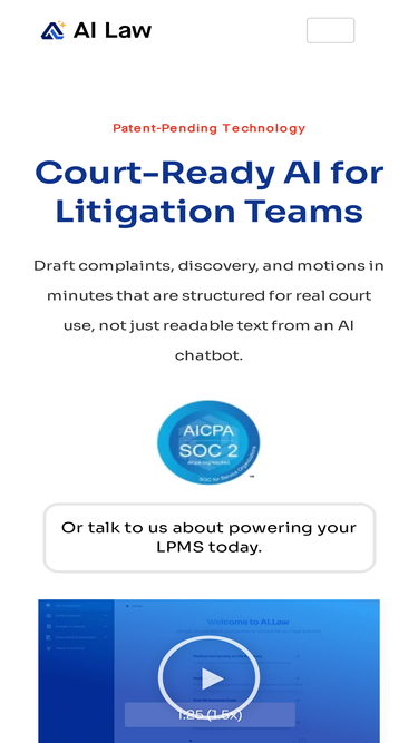 89%AI.Law Competition Matrix AI.Law offers the most comprehensive litigation tools on the market. No other competitor offers the breadth of AI document drafting and analysis. Competitor’s Advertised Features Edit Feature AI.Law Eve Legalmation Foundation AI Briefpoint AI Legal Chat ✅ ❌ ❌ ❌ ❌ Chat Pre-Prompting ✅ ❌ ❌ ❌ ❌ Complaints – PI ✅ […]