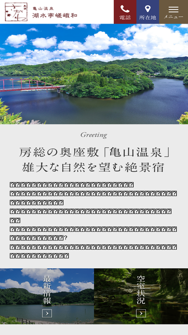 88%亀山温泉ホテルは、大自然の静寂と房総随一の美肌の湯を愉しむ湖畔の湯宿。都心からわずか70分。チョコレート色の天然自噴温泉を24時間かけ流し。『お客様の最幸の笑顔創り 家族の絆が深まる湯宿』がコンセプトの宿。