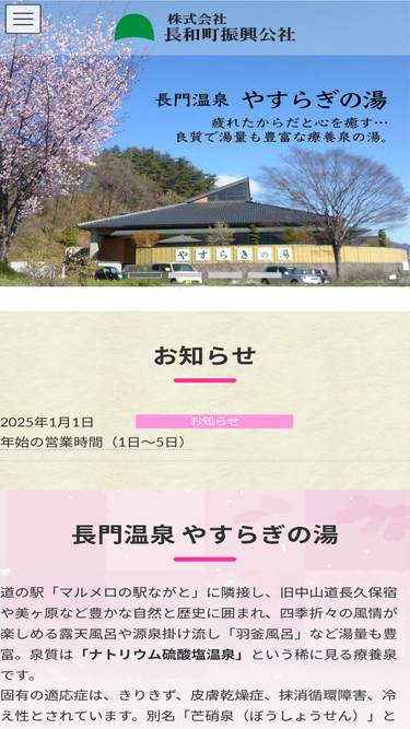 64%やすらぎの湯は、道の駅「マルメロの駅ながと」に隣接し、旧中山道長久保宿や美ヶ原など豊かな自然と歴史に囲まれた良質な療養泉の温泉です。