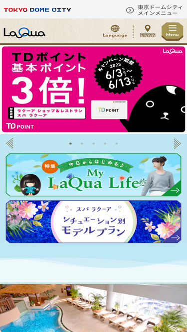 78%東京・文京区、都内からのアクセス抜群の東京ドームシティにある融合商業施設「LaQua」の公式ホームページ。レストランからイートイン、テイクアウト可能なグルメに、日用品・雑貨・ファッションまで幅広いジャンルの店舗が勢揃い。 上層階には天然温泉を使用したスパ施設とプライベートサウナを併設し、屋外エリアではジェットコースターや観覧車などのアトラクションも楽しめるラクーアのお得なプランやキャンペーン、セールなどの情報が満載。