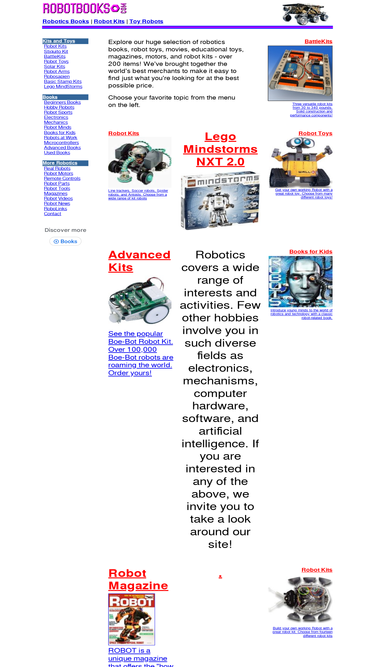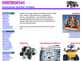 99%reviews of robotics books, plus robot kits, movies, and toy robots. build robots for competitions, for industry, or just for fun! learn about artificial intelligence, electronics, and mechanisms. read about mobile robots, educational toys, walking robots, even robots that play soccer! enter competitions like robot wars, battlebots, robot sumo, and robocup!