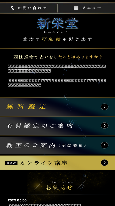 92%他には無い独自の自動無料鑑定システムで詳しく占います。四柱推命の鑑定術や説明を豊富な資料とともに分かりやすく解説。群馬県高崎市。