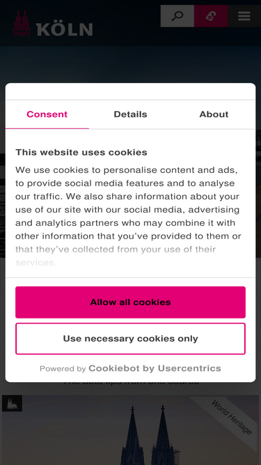 100%Our services: Tourist information ✓ Brochures ✓ About us ✓ Travel & mobility ✓ KölnShop ✓ Accessibility ✓ and much more!