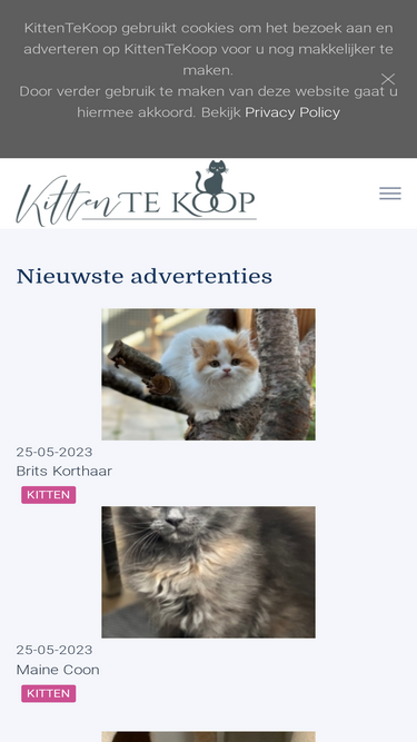 92%kittentekoop is een website waar u advertenties plaatst voor (ras)kittens en (ras)katten, een link naar uw cattery opgeeft, herplaatsingen aanbiedt of uw kater toevoegt aan de dekkaterlijst.