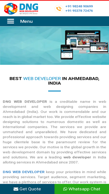100%DNG WEB DEVELOPER is Ahmedabad based #1 website developer in India. We are prominent website designing and Web Developing company in Ahmedabad, Gujarat, India having 10+ Years experience in web desinging, web development, Digital Marketing and Software Development. Contact Ahmedabad's best website developer for Portal and App development.