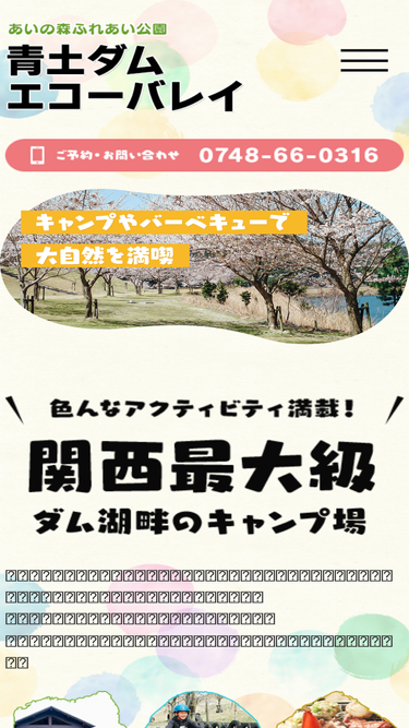 89%滋賀県甲賀市にあるふれあい公園「青土ダムエコーバレイ」には、自然を満喫できる施設がたくさん揃っております。キャンプ場でのバーベキューはもちろん、季節ごとに様々なイベントや体験を実施しております。