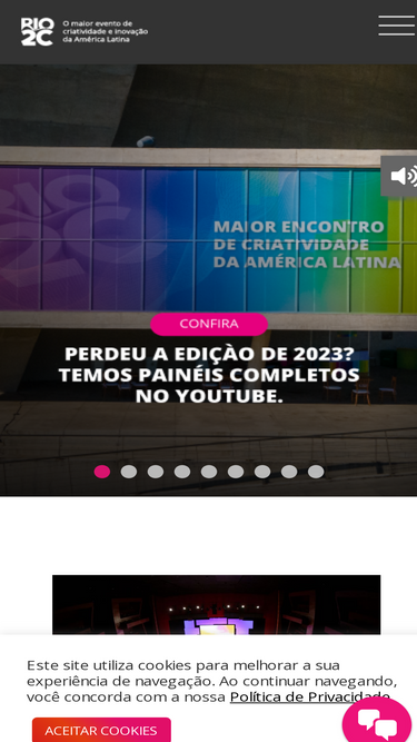 62%O encontro de criatividade da América Latina se divide em Summit, Conferência, Mercados e Festivalia. Durante seis dias, o Rio2C apresenta uma inigualável exposição de conteúdos em keynotes e painéis abordando temas urgentes e relevantes da indústria criativa, reunindo alguns dos maiores nomes do mercado.