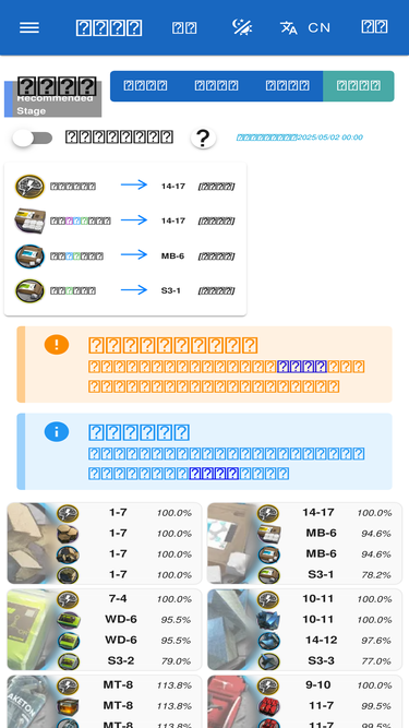 78%arknights toolbox, all servers are supported. 明日方舟工具箱,全服支持。目前功能包括:公开招募计算、精英材料计算、刷图规划、干员升级计算、基建技能筛选、仓库材料导入。
