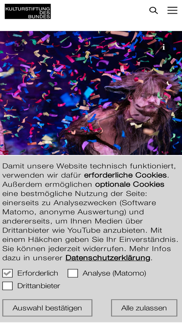 98%Die Kulturstiftung des Bundes fördert innovative und internationale Programme und Projekte in Kunst und Kultur. Sie wurde 2002 in Halle (Saale) gegründet.