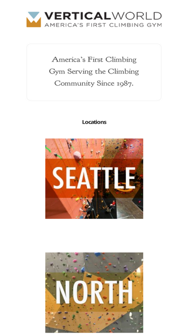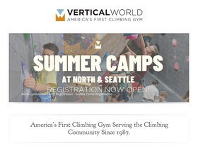 74%america's first climbing gym! the vertical world is the puget sound's premiere rock climbing, fitness, bootcamp, yoga, youth program and summer camp destination with three convenient locations: seattle, redmond and everett.