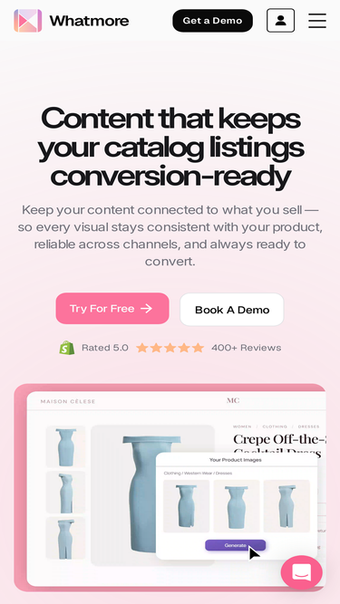 87%Create on-model photos and videos in minutes from just a flatlay. Whatmore helps fashion brands skip costly shoots and generate quality visuals 10x faster with AI.