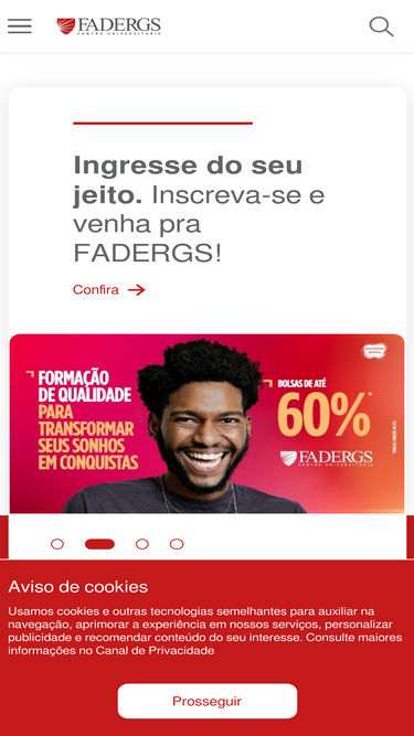 67%Com 20 anos de tradição, a FADERGS oferece cursos de graduação e pós-graduação com infraestrutura moderna e foco na empregabilidade.