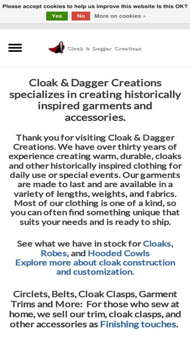 100%Raven Fox Capes and Cloaks offers luxury cloaks with pockets made with high quality fabrics. Our cloaks are ideal for all kinds of special occassions like Ren Fair, Halloween, D&D, LARPing, Modern Witches, and more.