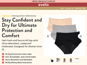 67%Evella is the ultra comfortable, 100% leakproof underwear designed to keep you dry, protected, and worry-free all day. Perfect for women 55+ with incontinence.