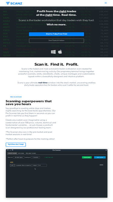 76%Scanz is a stock market scanner that helps day traders find profitable trades quickly and easily by monitoring live market activity.