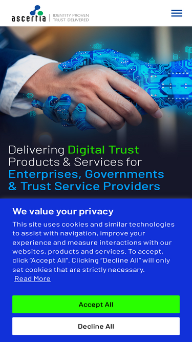 93%high-trust pki and digital signature software solutions powered by ascertia. learn more about our full product range for enterprise, government and tsps: