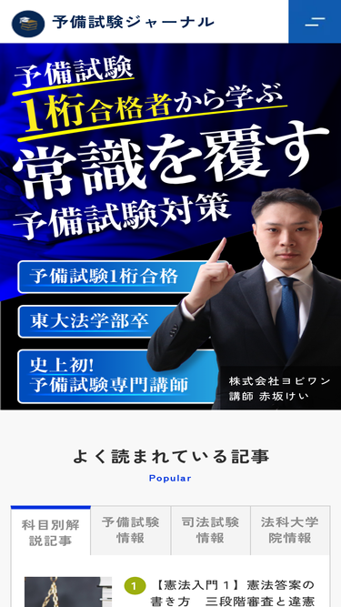 68%何故、著名な予備校講師たちでも予備試験に受からなかったのか?その理由は、「ある本質」を知らなかったからです。「〇〇を制する者は予備試験を制する」その〇〇とは?「解法」がわかると、予備試験レベルの難問でも切り崩すことができる予備試験『 超上位合格者』 だけが知る「客観的読解法」と「解法パターン」とは...