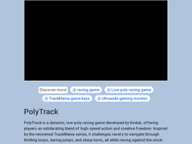 92%Play Polytrack Custom Tracks — the free online racing game inspired by TrackMania! No downloads, unblocked access, and fully mobile-friendly. Race anytime, anywhere, and test your skills on thrilling tracks!